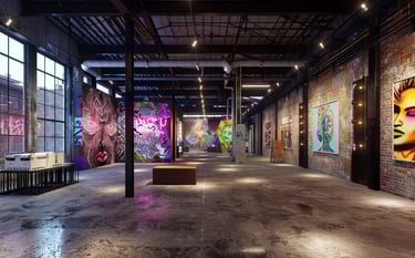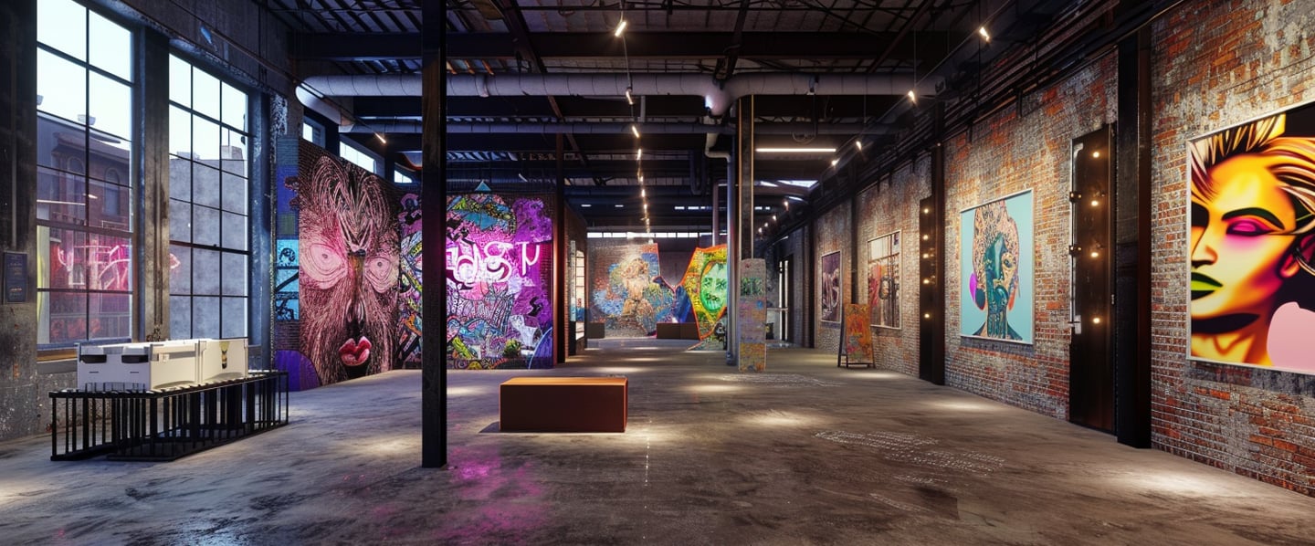 Un espacio diseñado para amplificar la energía cruda del arte urbano dentro de una envolvente industrial refinada. Ladrillo expuesto, concreto pulido y sistemas a la vista dialogan con murales vibrantes y piezas provocadoras. Un recorrido visual creado para una comunidad artística que celebra lo auténtico, lo disruptivo y lo colectivo.